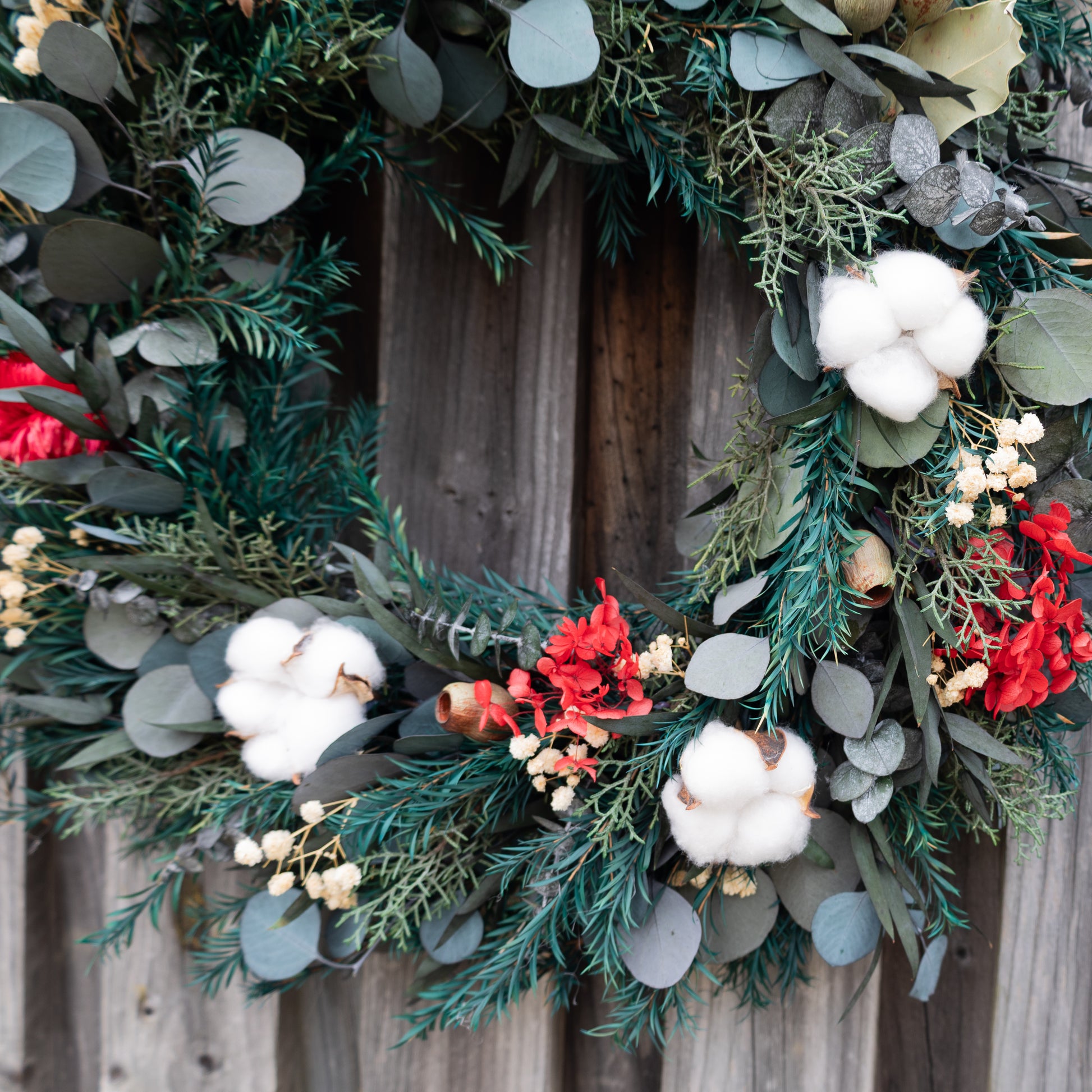Australian Dried Christmas Wreath – Eucalyptus, Banksia & Cotton