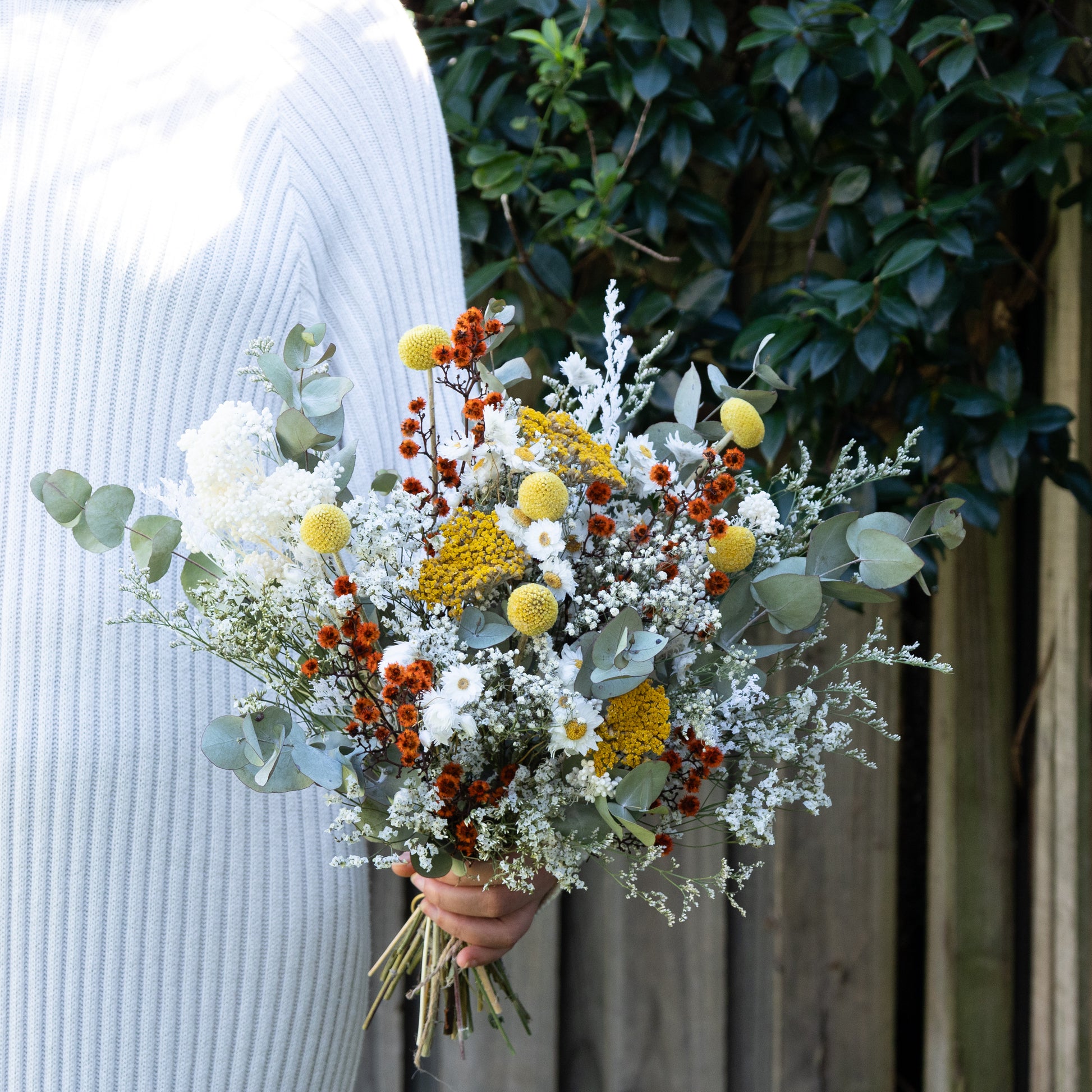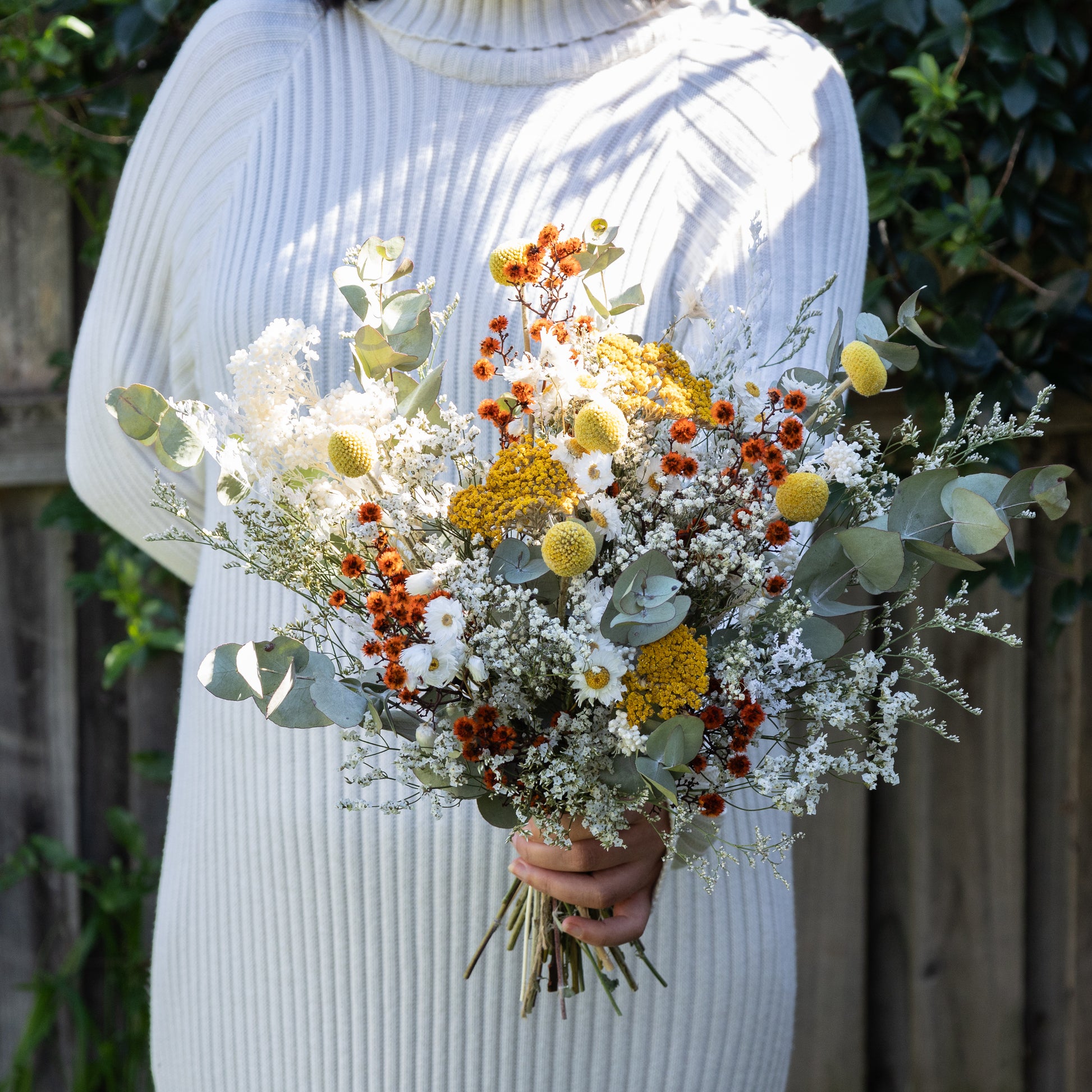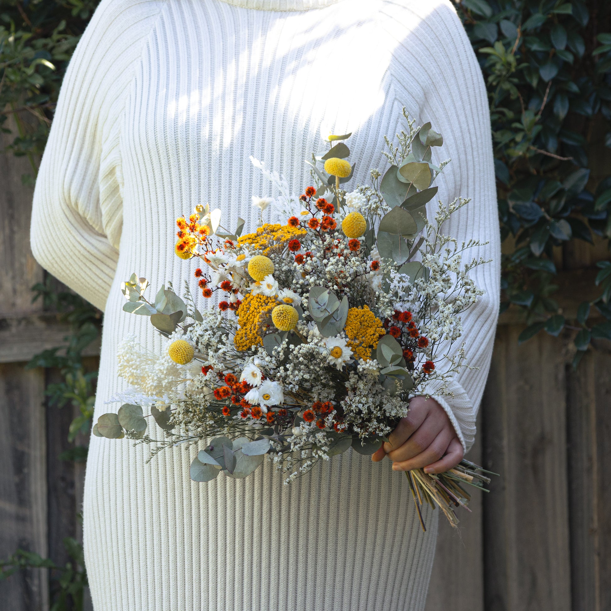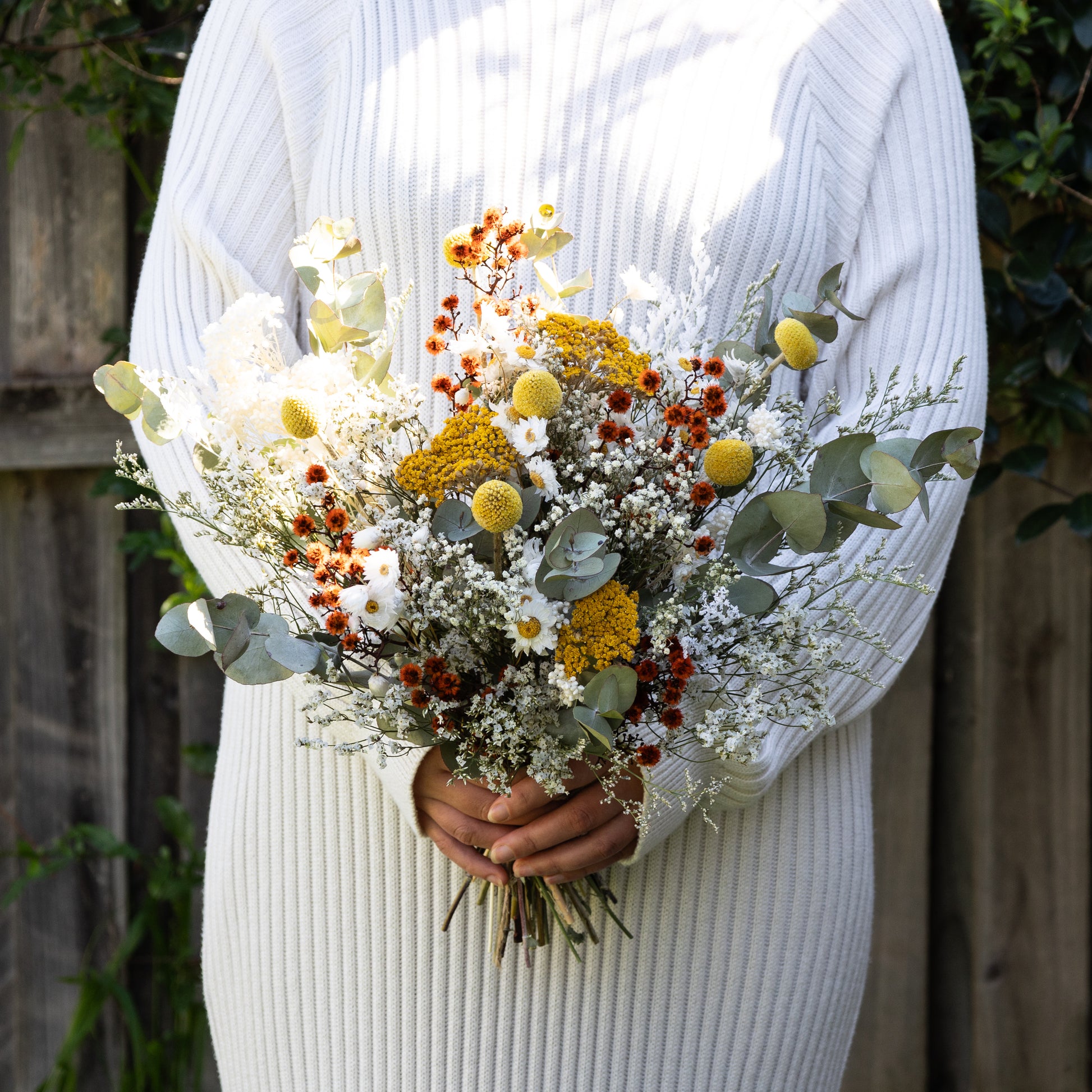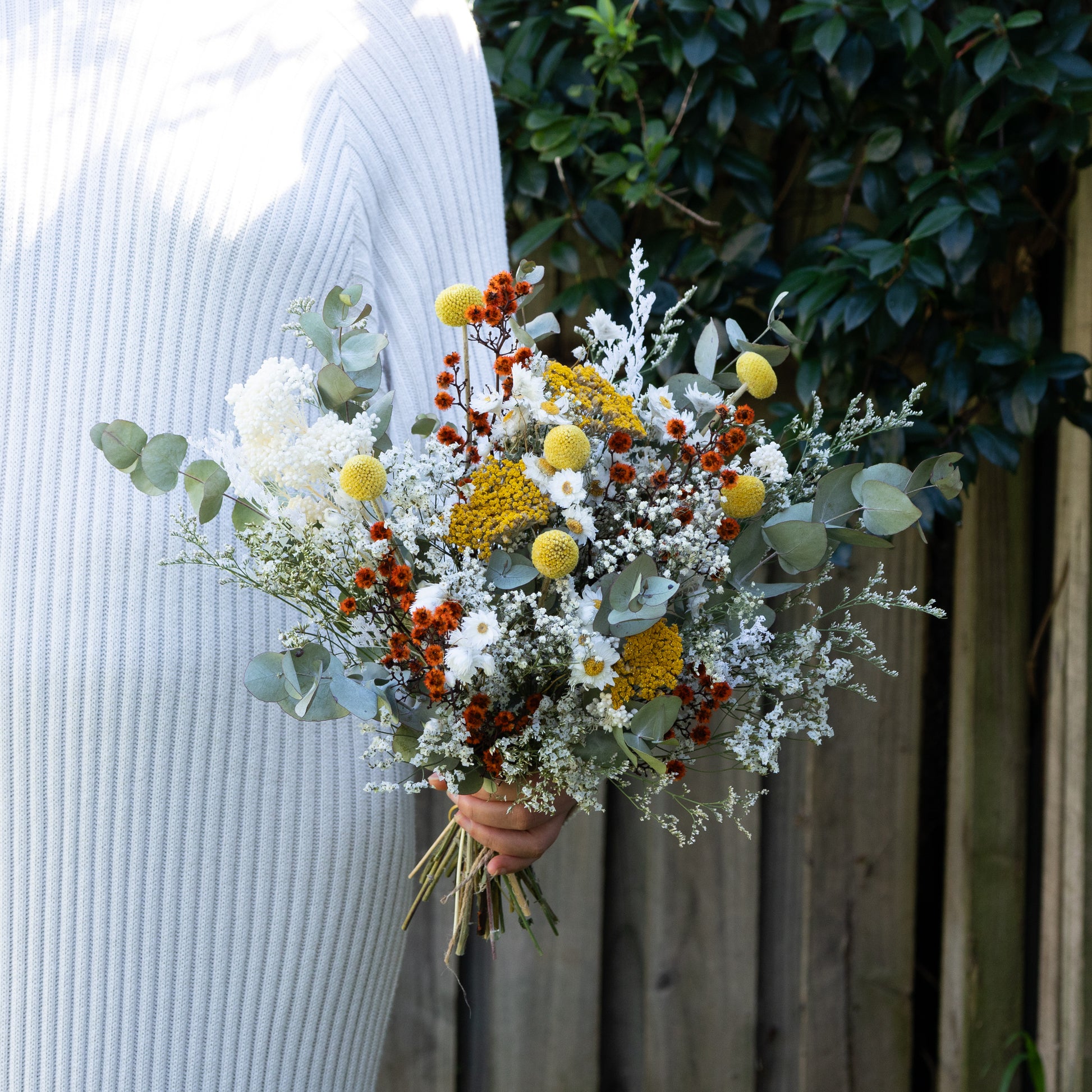 This bouquet is perfect for countryside weddings, boho brides, or a nature-inspired home accent. Each bloom is preserved to last, bringing joy and colour for months to come.